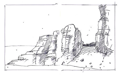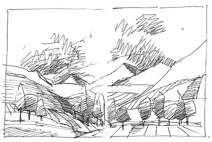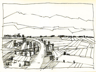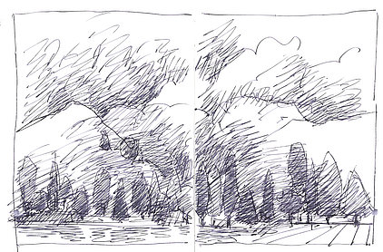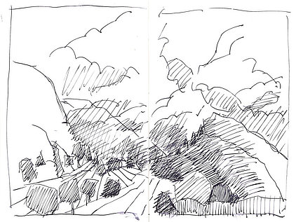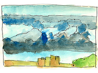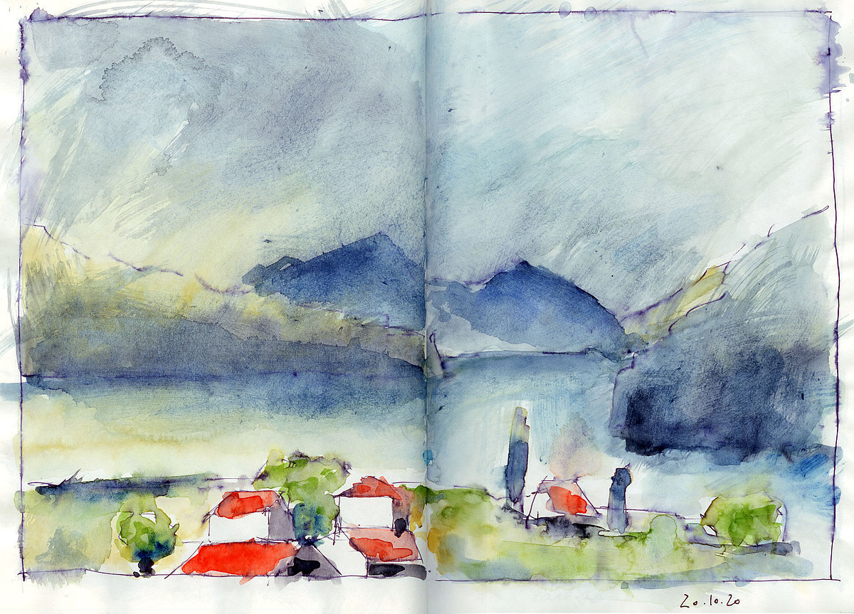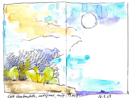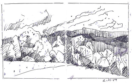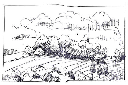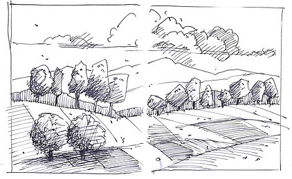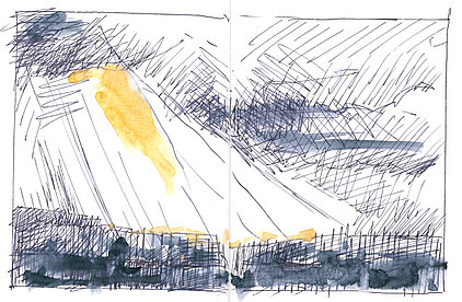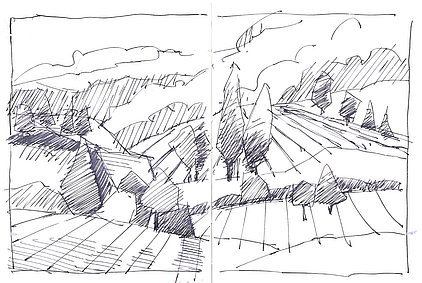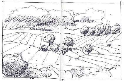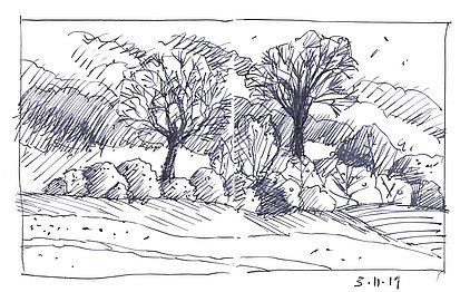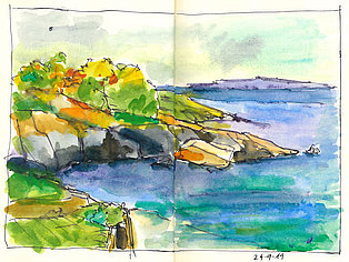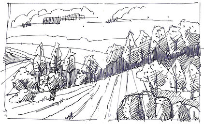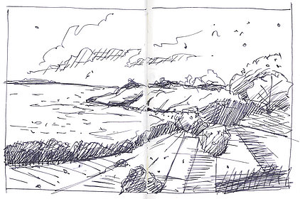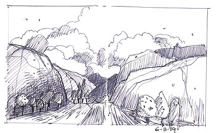 Die Skizzenbücher 22 bis 29 (in Auszügen) der Jahre 2018 – 2020 enthalten zeichnerische Begegnungen mit Illustrationsstilen anderer Zeichner. Beeindruckt durch vor allem die englischen und schottischen Zeichner Ian Mcque, Ian Sideaway u. a., deren Zeichentechnik mich beeindruckte, wandelte sich mein eigenes Zeichnen. Stark war die Spur durch Ian Mcque’s Zeichenart, die eine klare, konturierte Zeichnung ergaben, ergänzt durch kleine Strukturen und Kringel, die eine Darstellung „erzählerisch“, lebendig werden ließ. Bei Ian Sideaway waren es die eigentümlichen Schraffuren, mit denen ich etwas experimentierte.