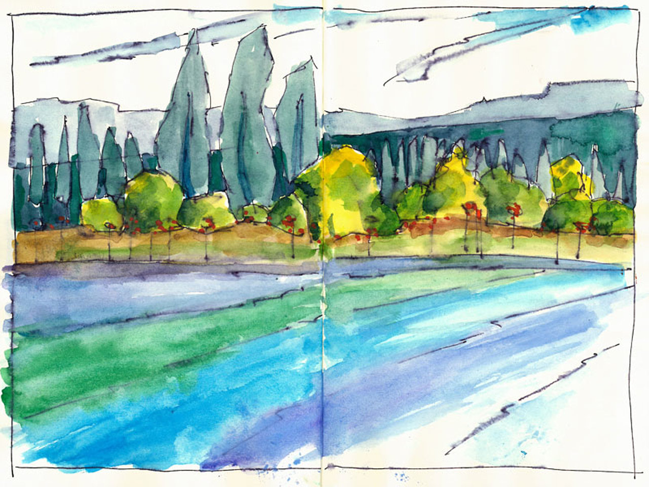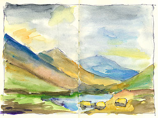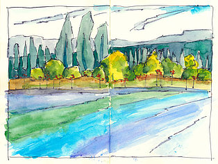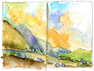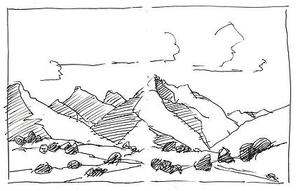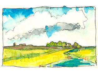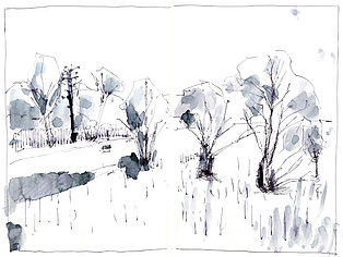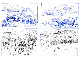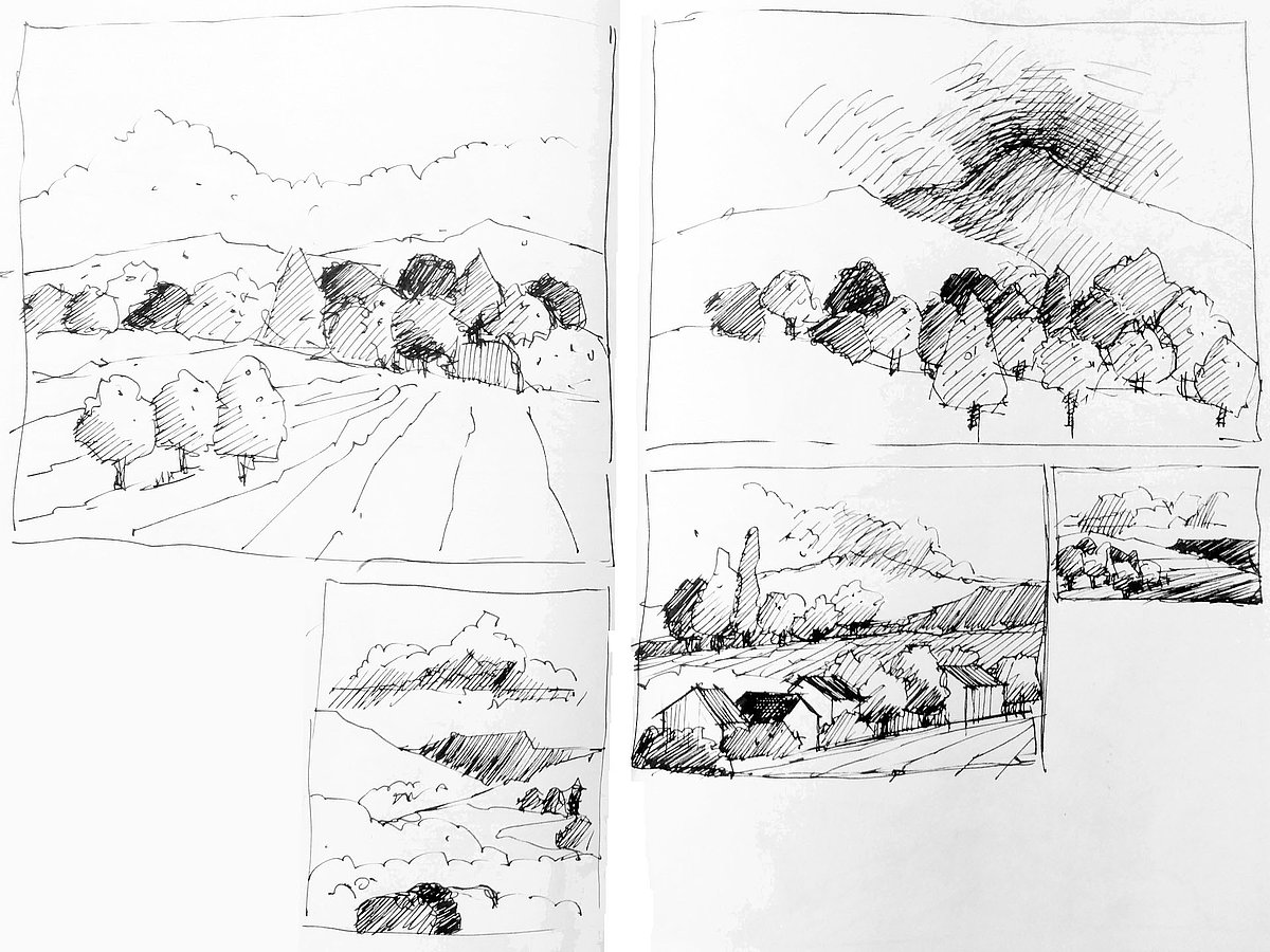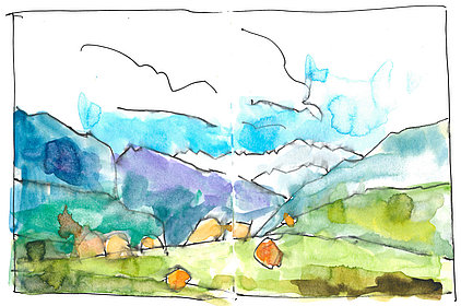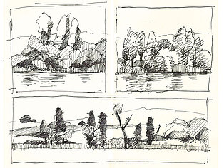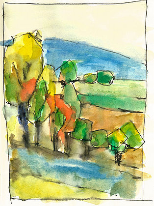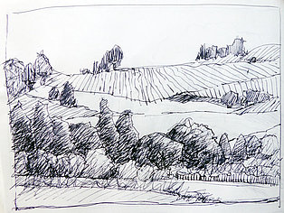 Neben der eigenen Handschrift und anderen individuellen und wenig veränderbaren Elementen geht es vor allem um das Kennenlernen anderer Handschriften. Wie machen das die anderen? Wie hat der Kollege seine Zeichnungen aufgebaut, wie wurde mit Schraffuren, Washings (großflächigen, nassen Aquarellflächen), mit Umrisslinien, mit Hervorhebungen, mit Bildaufbau und Komposition, Beleuchtung usw. umgegangen. Von anderen lernen, erkennen, wie andere eine zeichnerische Herausforderung, eine Aufgabenstellung, eine konkrete Situation (z. B. Nadelbäume) angegangen sind. Aus dem Nachahmen entsteht eine allmähliche Übernahme in den eigenen Zeichenkasten, in das eigene Instrumentarium. Im Falle eines Zeichenprojektes, einer Illustrationsserie für ein Buch beispielsweise, bin ich auf eine bestimmte Zeichenweise über die gesamte Strecke der Serie festgelegt. Die vielen kleinen Entscheidungen über noch mehr Details müssen „aus einem Guss“ sein. Dennoch kann eine Handschrift flexibel sein, kann Elemente anderer aufnehmen und erweitern oder reduzieren, kann Stilmittel ergänzen, neue Farbenklänge finden, andere Bildaufteilungen oder Kompositionsschemen austesten. Ein solcher Ausflug lohnt sich in jedem Fall.